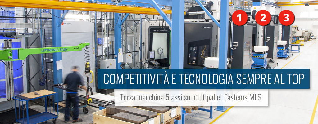 La terza macchina cinque assi DMG Mori DMC 80 U duoBLOCK è stata installata sul nostro sistema multipallet Fastems MLS per ottimizzare ed incrementare la produzione delle unità a camme OMCR. Sotto la guida di operatori qualificati ci consentirà di garantire un lead time sempre più rapido, una qualità sempre più elevata ed una eccellente continuità nelle forniture per soddisfare le esigenze dei clienti.