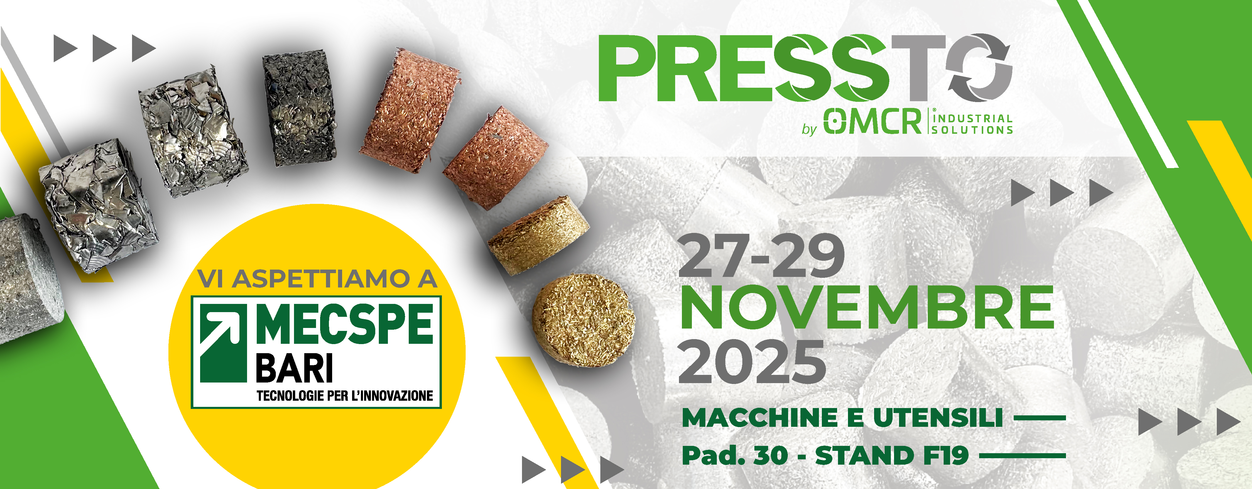 Saremo presenti nel settore Macchine Utensili, Padiglione 30 – Stand F19, dove potrete scoprire il nostro compattatore di trucioli PRESSTO e conoscere da vicino come può migliorare l’efficienza produttiva, generare risparmio economico e trasformare lo scarto in risorsa. Per partecipare e richiedere il biglietto gratuito cliccate qui!