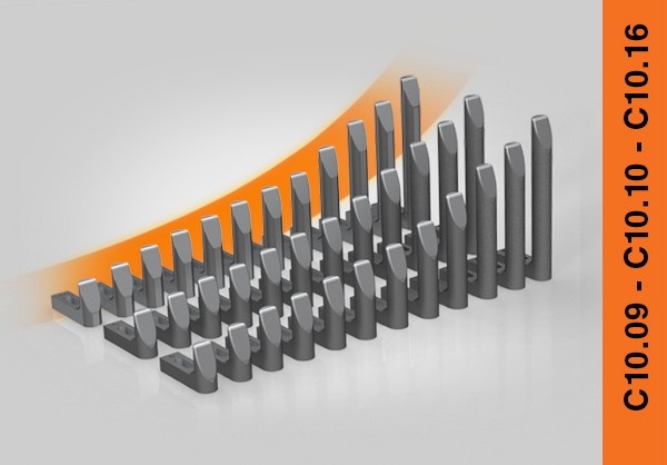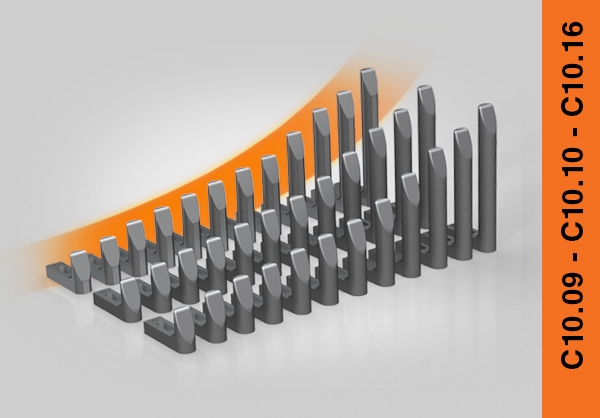 • C10.09, C10.10, C10.16: ampliamento della gamma dei riferimenti, misure da 65 a 350 mm con passo di 5mm